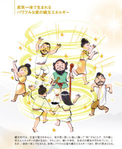 縄文時代は、一人ひとりがパワーを発揮して、神たる霊力を授かる天皇を輪の中心にして、輪になって踊りながら祭りを楽しみ、それがそのまま政、つまり合議的に政治を決める場でもありました。政治的な権力を手にした一部の人が、私腹を肥やすだけの政治の時代は、もう終焉します。