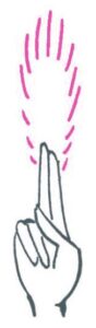 2 右手で剣印( 人差し指と中指をつけたジャンケンのチョキの形)を作ります。指の先から光を放つ、“光の剣”をイメージしましょう。