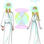 「夜明けの晩」とは、高次元には時間の概念がなく、夜明けも晩も、過去も未来も同時に存在することを示します。「後ろの正面だあれ」で、人間がそこに意識を向けることで、それまで波であった素粒子が、目に見える粒子となり、現実として姿を現します。「私たち一人ひとりがすなわち現実の創造者」という量子力学を表現しているのです。