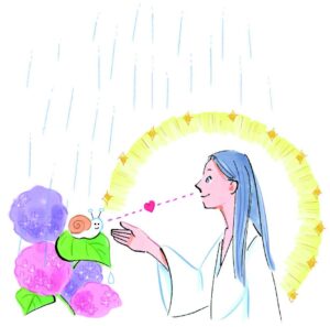 梅雨も最早ジメジメ、鬱々というのはなく、管理したうえで必要な地域だけに降らせたりしています。雨が降ったときは、自らの体の光の割合を強くして、影響を受けないようにします。逆に、春雨の感触を楽しみたい、などというときには、あえて物質化したり。次元が進むと、自分の霊と物質の割合を、自在に変えることができるんです。
