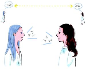 想念どうしでやり取りをするテレパシーもありますが、主流は、波動を言語化する「波動パシー(笑)」です。いま流行りの宇宙語の延長のような感じでしょう。私のソウルネームが「龍依(ロイ)」だと教えてもらったときも、「ロイなんたらかんたら……」という波動語で、「ロイ」しか聞き取れなかったんです(笑)。