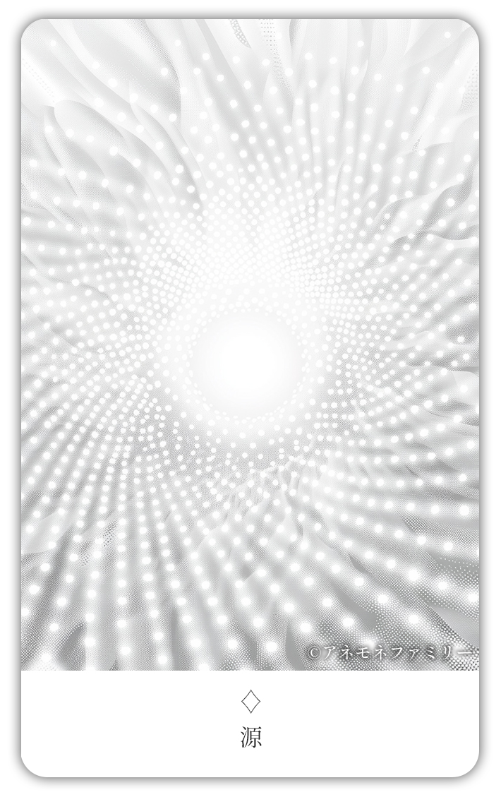 源 「源」 あらゆるものが生まれる以前に在る、原初のエネルギー。 それは、意思をもって世界を動かす神でもなく、善悪を裁く意識でもない。 始まりであり、終わりであり、分かたれる前の、ひとつなるもの。 あなたが呼吸を覚える前から、名を持つ前から、何者かになろうとする前から、すでに、あなたの内に在ったもの。 光も、闇も、 愛も、怖れも、 創造も、破壊も、 すべてはこの「源」より静かに立ち上がり、そして、静かに還っていきます。 このカードが現れたとき、理解しようとする必要はありません。 悟ろうとする必要も、変わろうとする必要もありません。 ただ、静かに、ほどけてください。 マインドが鎮まり、 役割が外れ、 名前が消え、 我が薄れていく、 その奥で、あなたはずっと知っていた感覚に触れます。 それは、安寧、歓喜、至福… そのような言葉でさえも表すことのできないことのないもの。 ただ、「ああ、ここだった」という深く、揺るぎない納得。 源は、あなたを導くこともなく、試すこともなく、期待することもありません。 ただ、源を離れ、極限の体験と成長を経たあなたが、再び還ってくることを、いつでも無条件に、待っているのみ。 ここから離れたことは、一度もありませんでした。 そしてこれからも、離れることはありません。 いま、この瞬間に立ち戻れる場所、魂のふるさとへの帰還です。 このカードが伝えるエネルギー 万象の根源ゼロポイント 存在と非存在を超えた真理 分離以前の意識 探求の終焉と深きやすらぎ 何者でもない完全性 Artwork:アネモネファミリー アネモネオラクル 共創企画特別カード 今日のアネモネオラクルをSNSでシェアしよう! オラクル結果のスクリーンショットを「#アネモネオラクル」Instagramでは@anemone_portalをメンションして、SNSでぜひシェアしてみてください! あなたの気づきは、きっと誰かの目醒めにもつながります。皆さまの毎日が光に溢れ、覚醒に向かいますように…。 アネモネオラクルTOPへ戻る