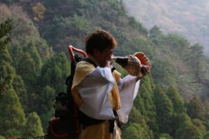 山窩と山窩の間で情報を伝える役割を担ったのが「飛脚」です。修験道で行なう「行者問答」はその名残りです。戦いの際には裏切りもあり、戦国時代には山窩どうしの争いも起こりました。山窩であった役行者も前鬼と後鬼※に「 どこの者だ 」と問い詰められ 、信頼されるまで厳しく試されました。それほど秘密保持が重要だったのです。飛脚の末裔の証言では、いまでも山窩の名残が残っていて、「デンジロウ」や「デンバチ」など、名前に「伝」がついている人がいるのだそうです。